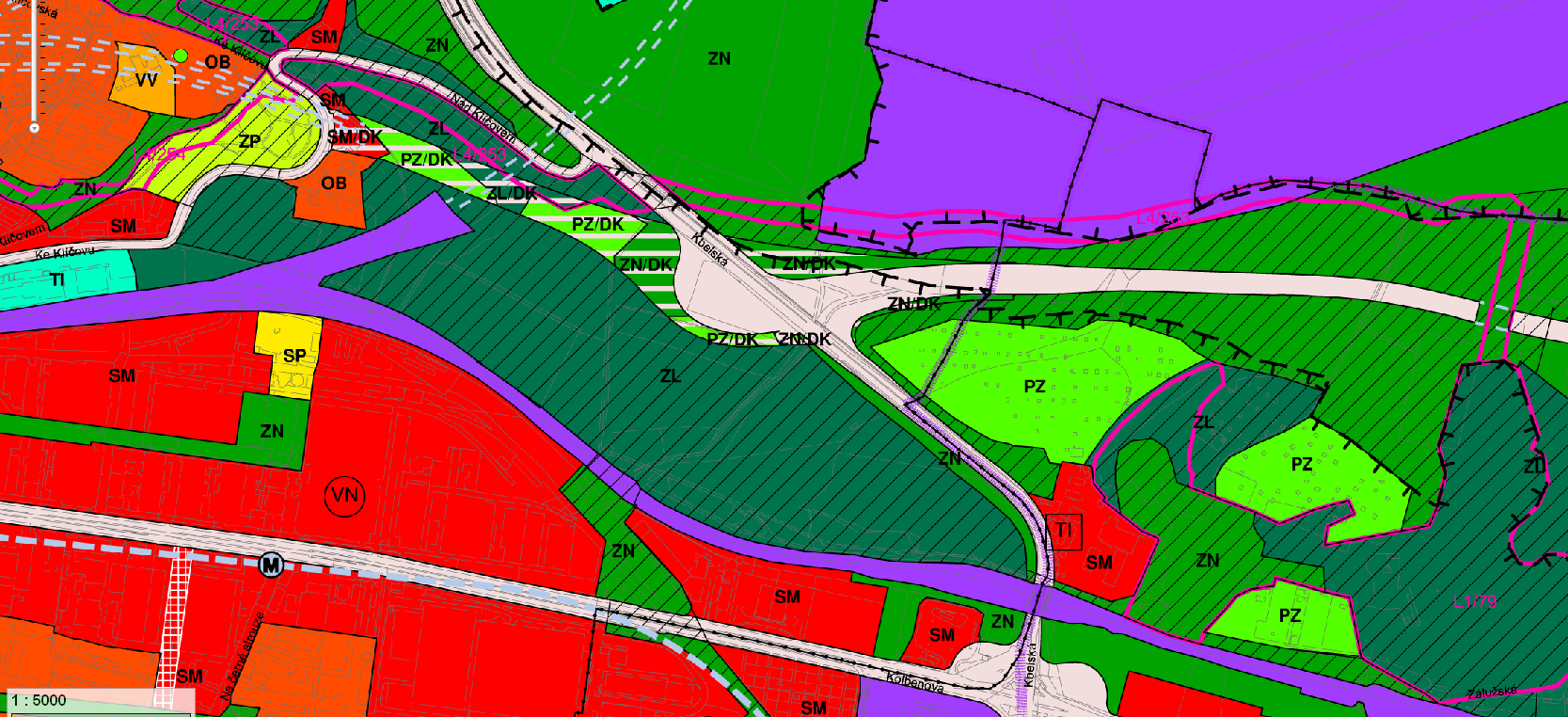 Ploty jsou zbudovány bez ohledu na biokoridor, který územím vede viz fialově ohraničený pás na obrázku.