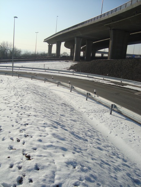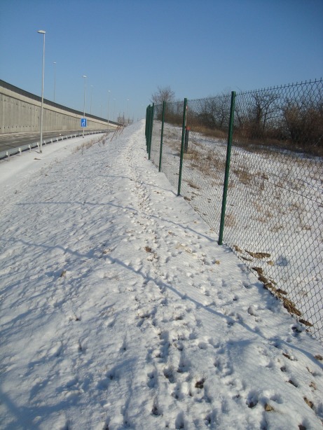 Při zimní procházce jsem zjistila, že se zvěř z Višňovky nedostane do kbelského „zeleného pásu“. Ochranné ploty, zbudované při realizaci Vysočanské radiály, tvoří nepropustné bariéry. Dostala jsem se do situace, kdy jsem při procházce musela pokračovat po valu podél Vysočanské radiály a plot mě nepustil do krajiny směrem ke kbelskému letišti a Satalicím. Všimla jsem si, že před plotem je vyšlapaná zaječí stezka. Zajíci, po překonání Kbelské, musí běžet po valu před plotem nad Vysočanskou radiálou. Asi po kilometru je přechod pro zvěř, na který se ale také nedostanou. Je tam sice branka, ale pochybuji, že ji zajíci umí otevřít.